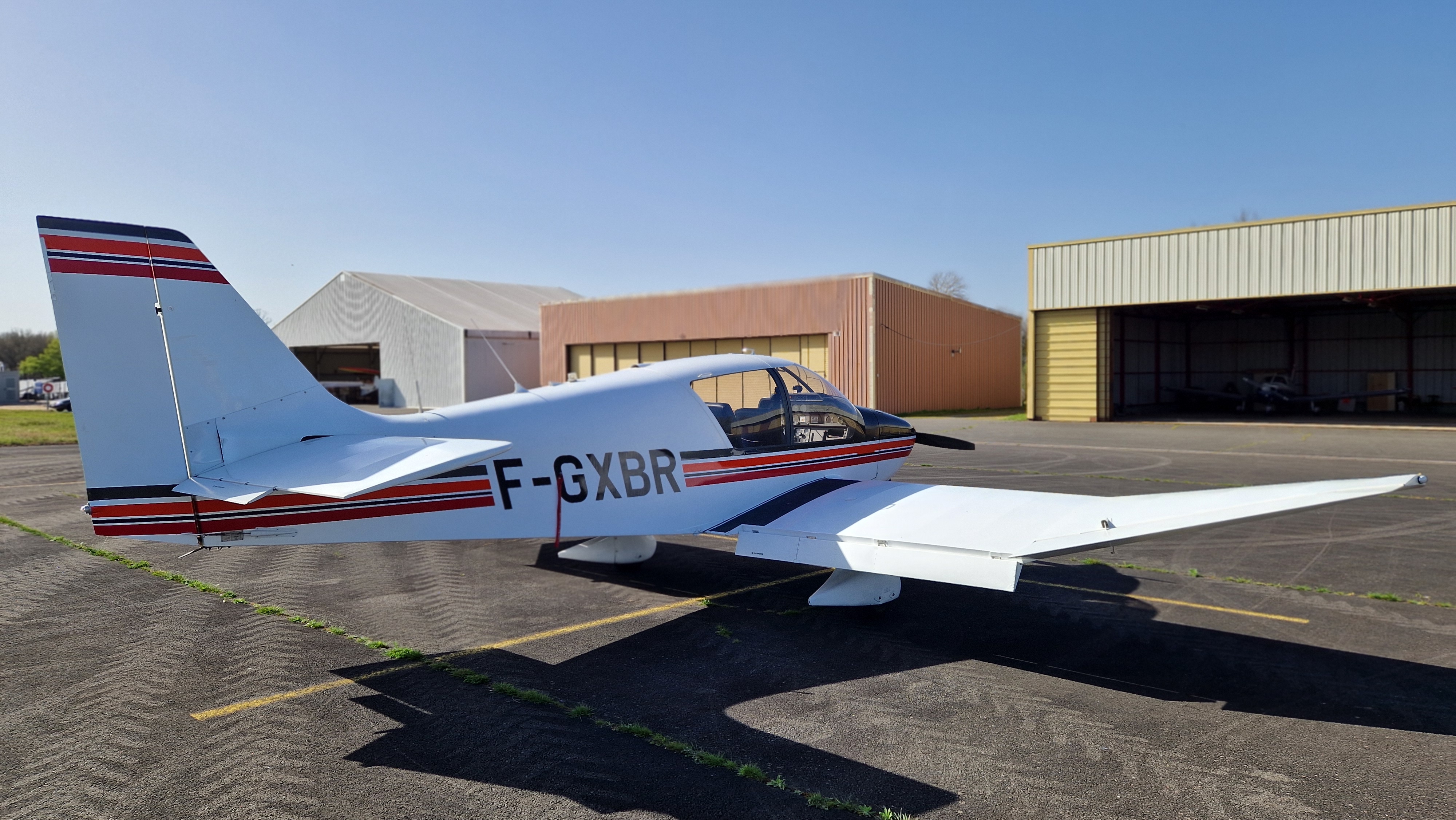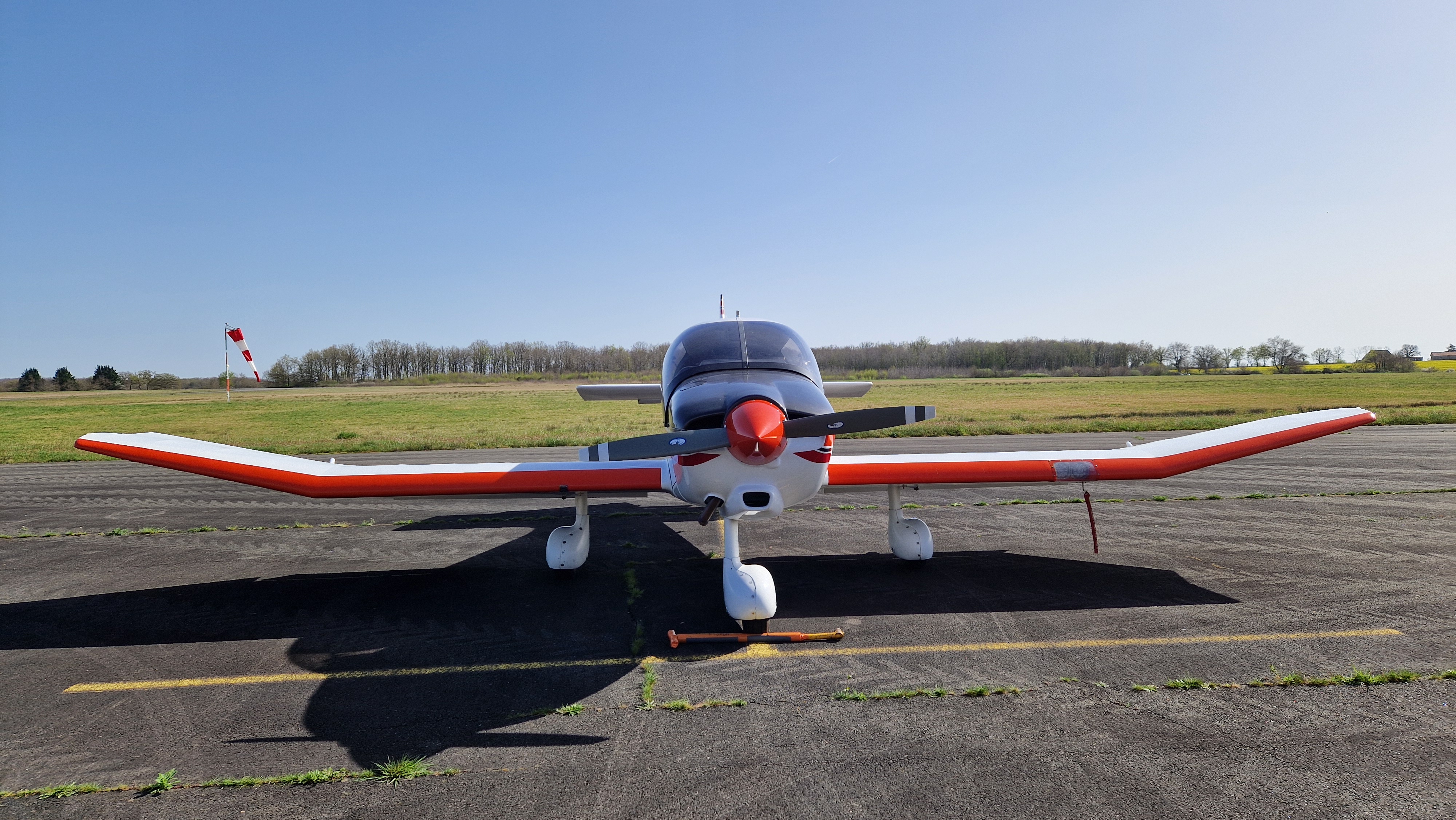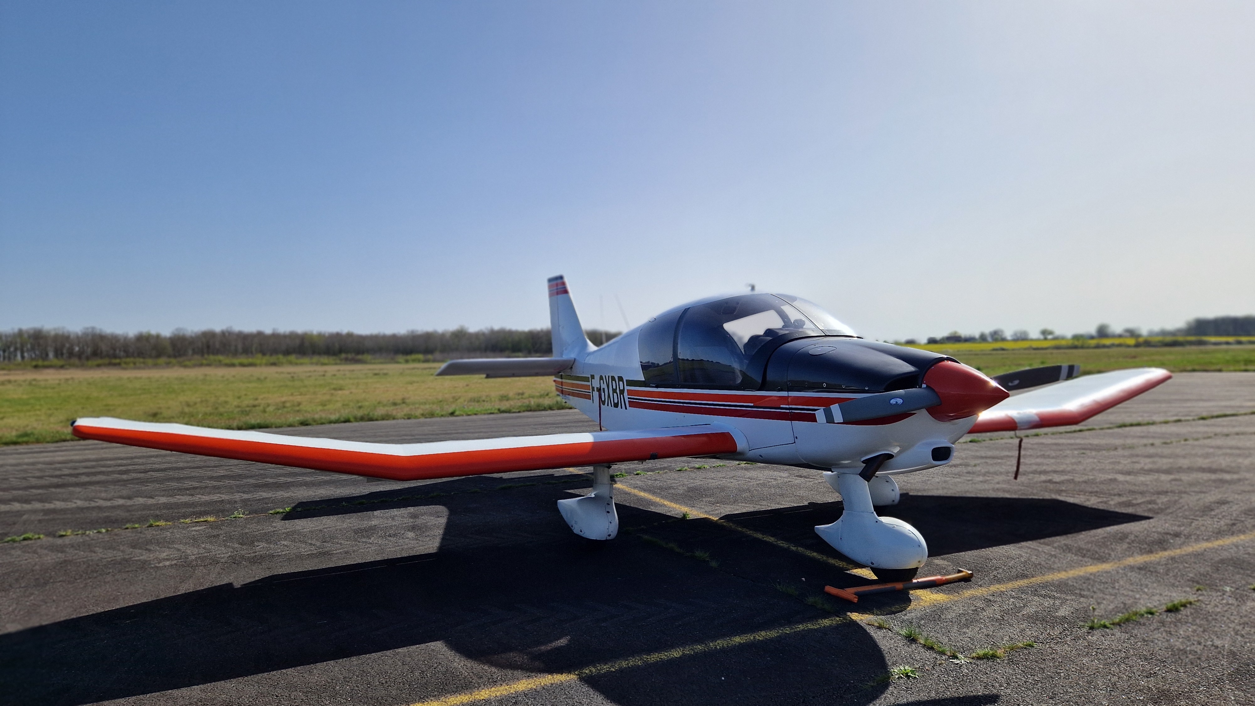 Robin DR400 – 120cv Construction : Bois et toiles, ailes basses Vitesse de croisière : 100 kt (185 km/h) Masse à vide : 550 kg Masse maxi au décollage : 865 kg Qté Carburant : 110 L AVGAS 100LL Consommation moyenne : 25 L/h